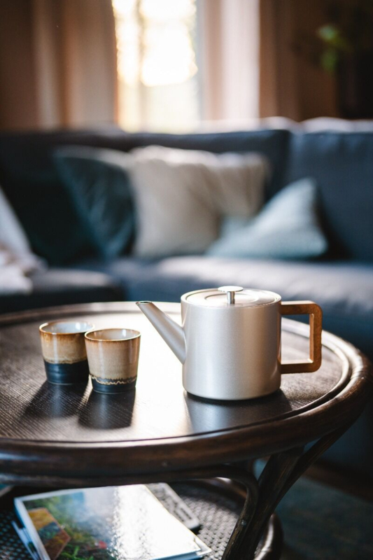 Een kopje thee is mooi om te delen, maar ook perfect om alleen te drinken. Geniet van je dag met deze mooie glanzende theepot in een elegante champagne kleur van Bredemeijer. De warme tint reflecteert subtiel het licht en geeft elke ruimte een stijlvolle zachtheid. De theepot wordt geleverd inclusief uitneembaar RVS theefilter. Geschikt voor losse thee en kruiden.