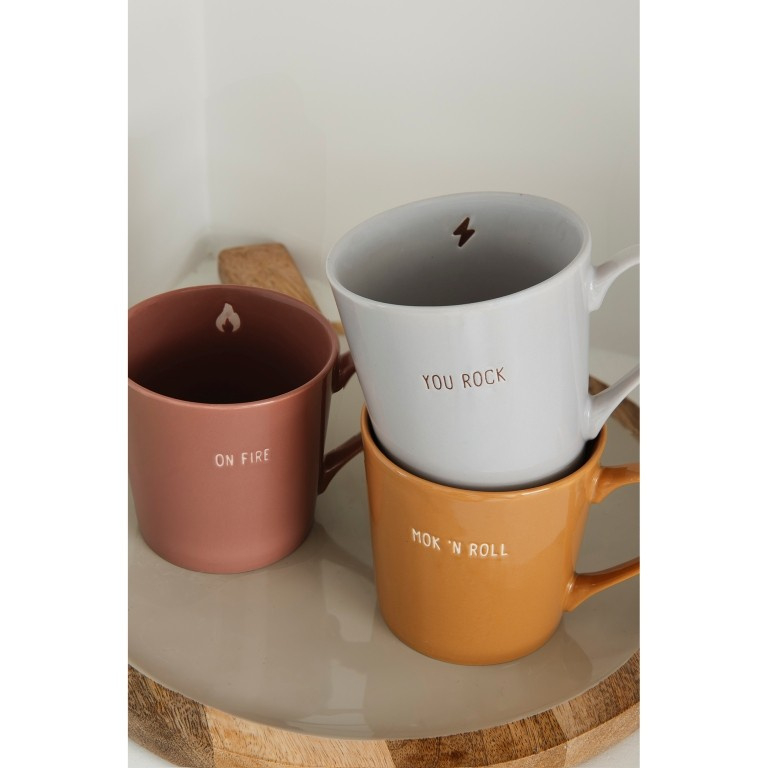 Een mooie licht glanzende theemok met de tekst ´you rock´. De binnenkant bevat een gegraveerd icoon. De mok is gemaakt van keramiek en heeft een inhoud van ca. 370 ml.€ 5,95
