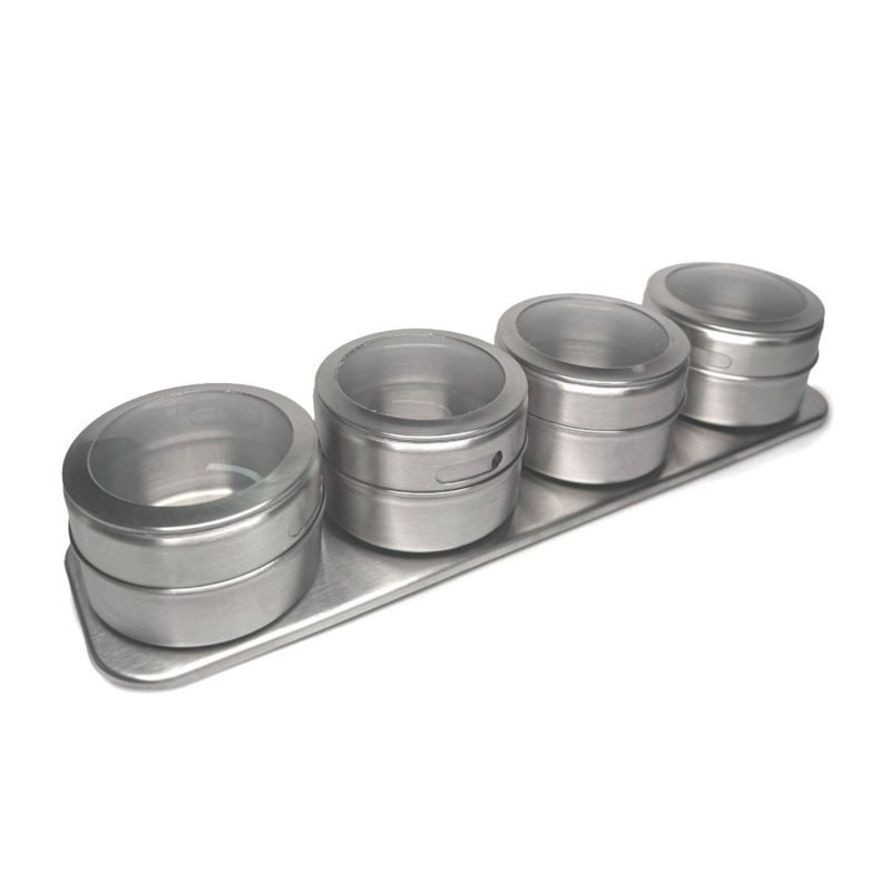 Een efficiënte oplossing om uw favoriete thee op te bergen. Deze 4-delige set bestaat uit magnetische bewaarblikjes van hoogwaardig 430 roestvrij staal. Ze hechten zich stevig aan de lineare basis. Ontworpen om de versheid van theebladeren, kruiden of specerijen te bewaren. Een must have voor de echte thee liefhebber! Dankzij de doorzichtige vensters kunt u precies zien welke thee in welk blikje zit.